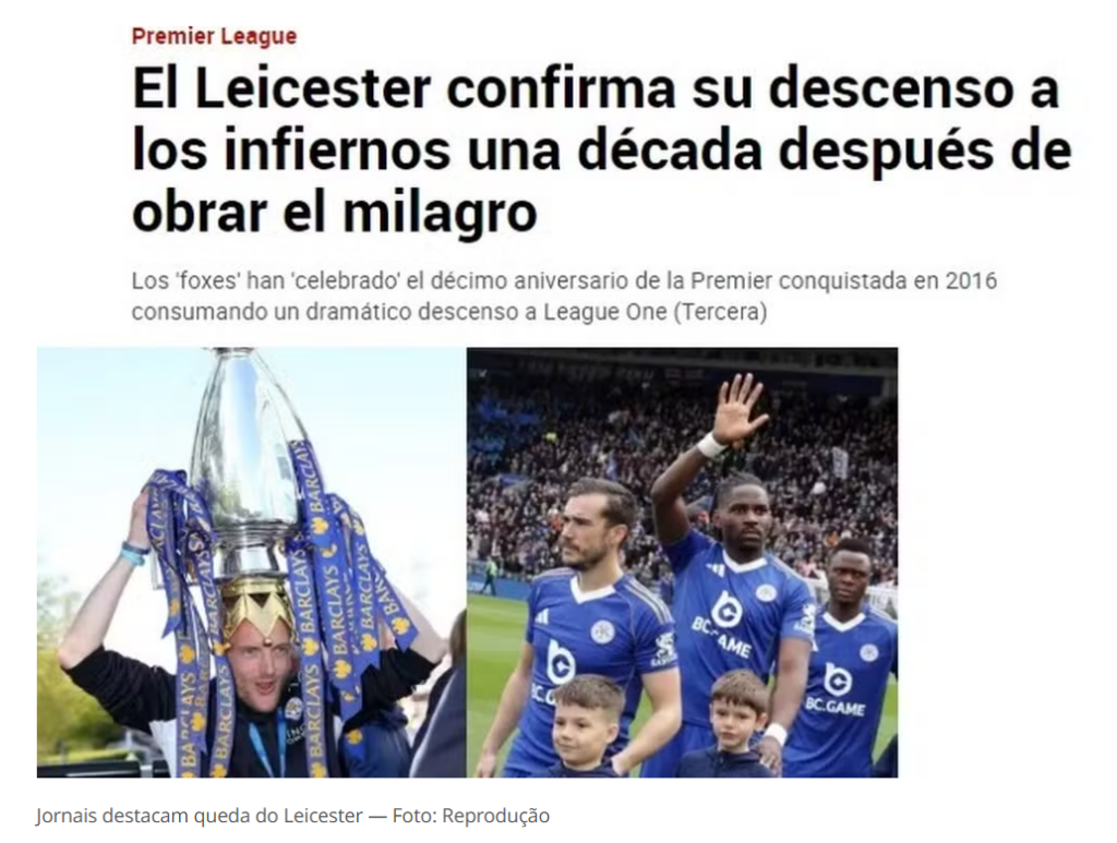 O Leicester City transformou em tragédia um dos maiores contos de fadas da história do futebol. O clube confirmou o rebaixamento para a League One, exatos 10 anos após o título da Premier League.